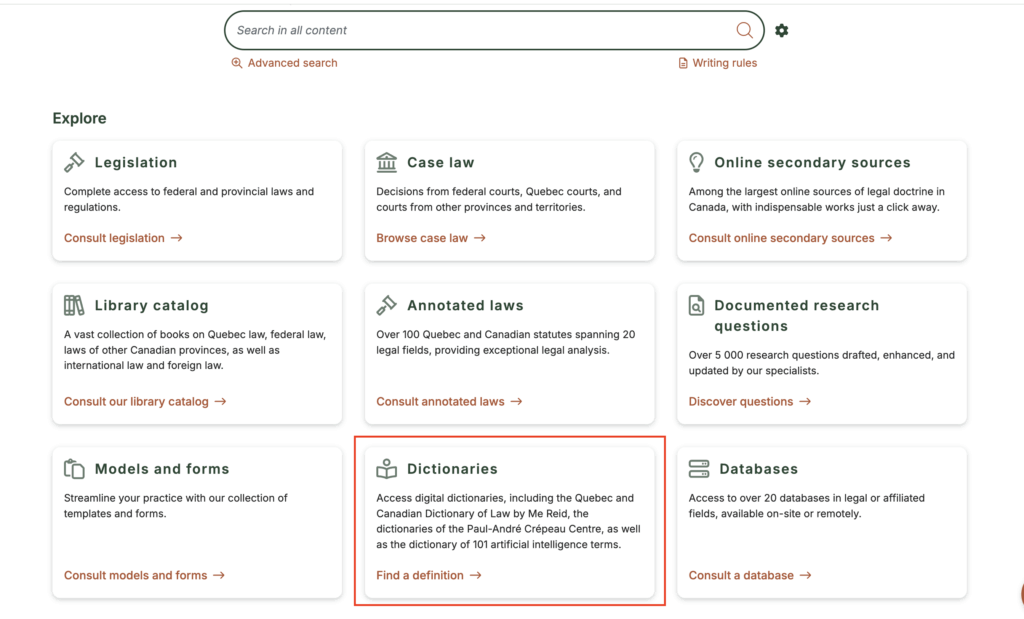 Yes, Espace CAIJ gives you access to several digital legal dictionaries, including :