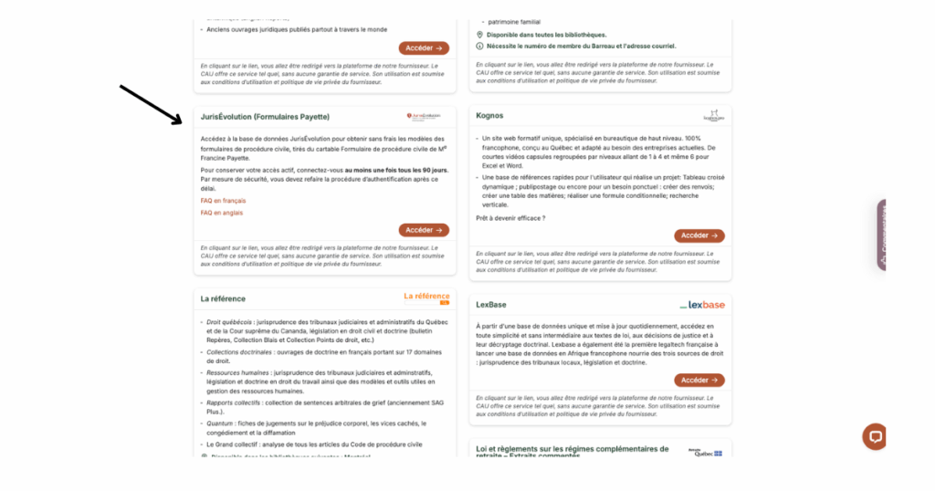 The list of databases to which you have remote access will appear. Select JurisÉvolution (Payette forms). Follow the connection instructions.