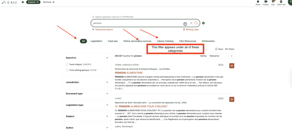 In Espace CAIJ, when you search using the CAIJ search engine and look for the author’s name, or any other keyword if you don’t know the author’s name, you can refine your search results using the Author filter on the left of your screen.
