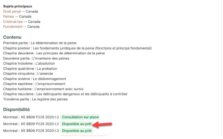 When consulting a document in the Library Catalogue, scroll down the page to locate the Availability section.