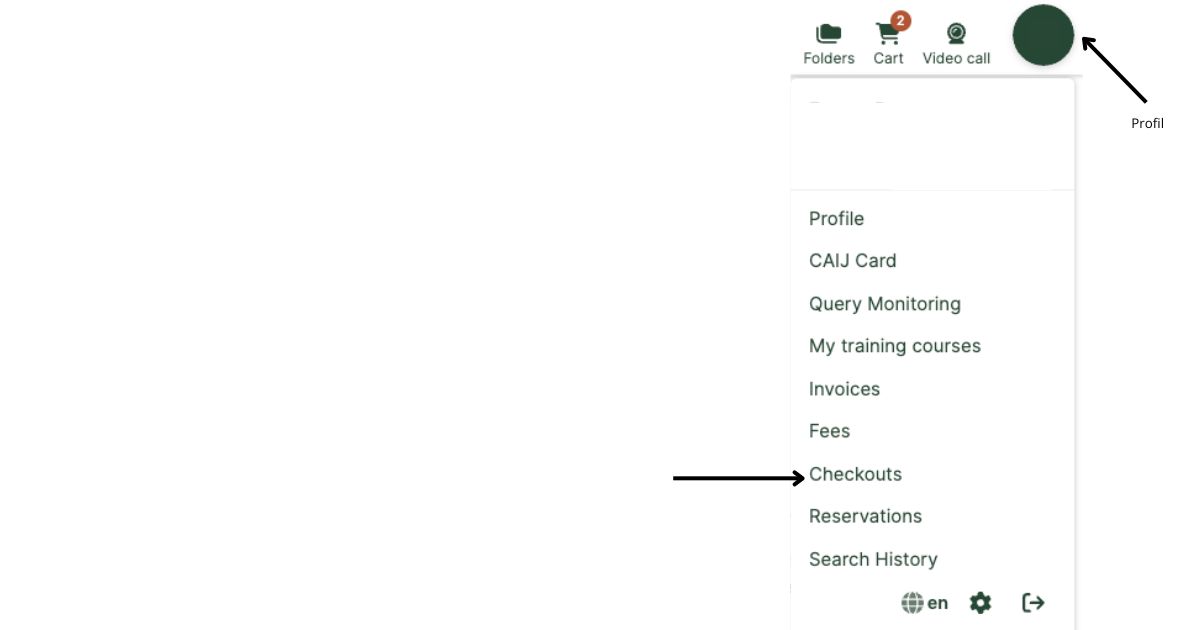 - Click on your profile icon in the top right-hand corner, then select “Checkouts” from the menu.