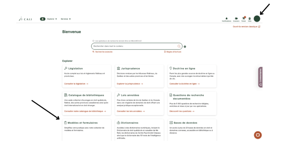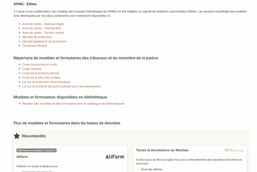 Une fois dans la section Modèles et formulaires vous pourrez voir tout ce qui vous est accessible.