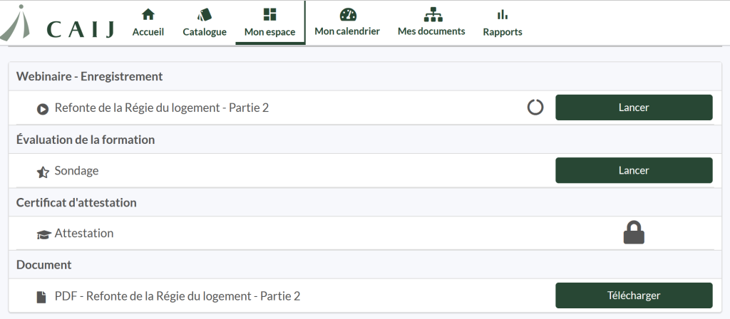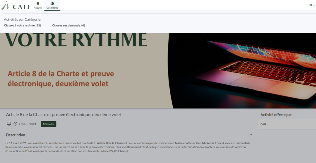 Vous pouvez aussi le faire à partir de la page Formation du site Web du CAIJ.