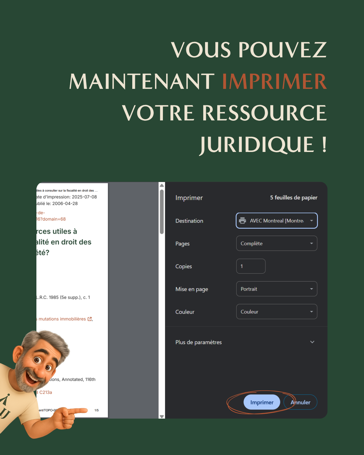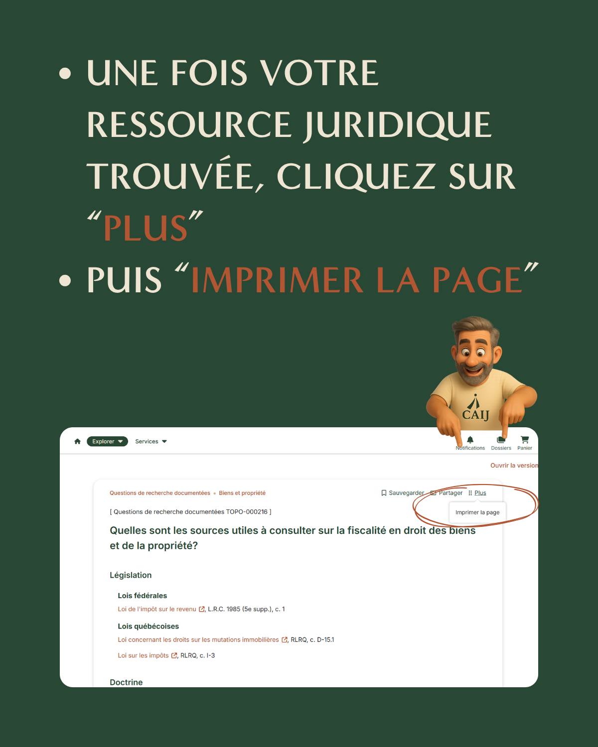 Il est possible d’imprimer une ressource juridique directement depuis l’Espace CAIJ, en quelques clics.