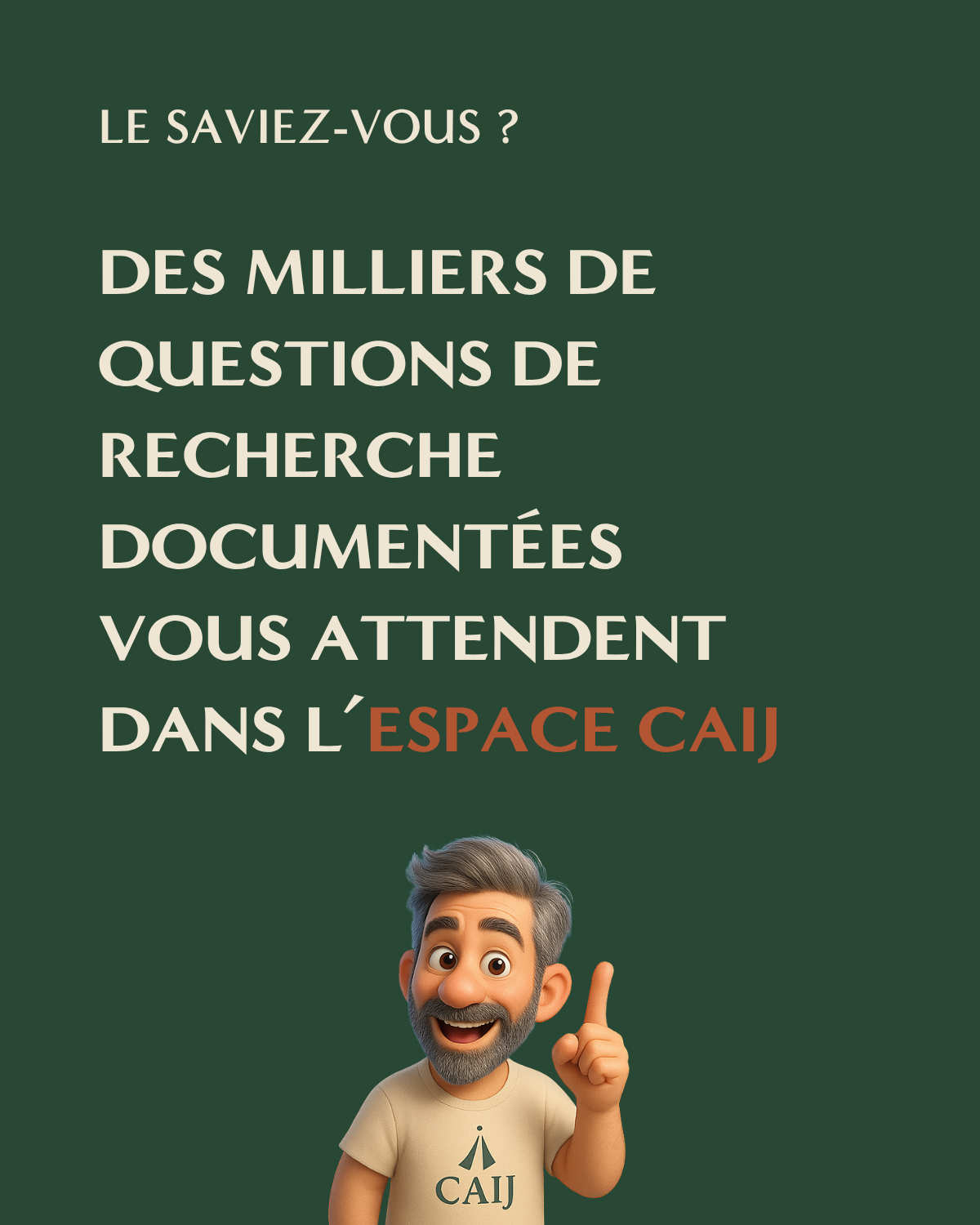 L’Espace CAIJ vous donne accès à plus de 5 000 questions de recherche documentées, rédigées et mises à jour par nos recherchistes.