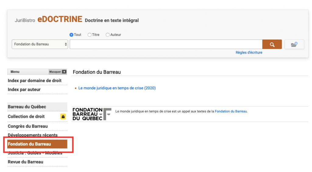 Découvrez la nouvelle collection de doctrine en ligne de la Fondation du Barreau!