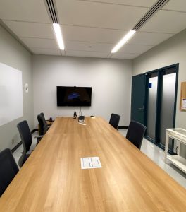 Ce local insonorisé et équipé d’un ordinateur, d’un photocopieur, d’un micro, d’une fenêtre givrée, d’une caméra de qualité et d’un écran géant peut accueillir jusqu’à deux personnes dans le respect des mesures de distanciation sociale. Au besoin, un technicien informatique pourra vous assister s’il advient un problème technique afin que vous puissiez vous concentrer sur l’essentiel : votre audience!